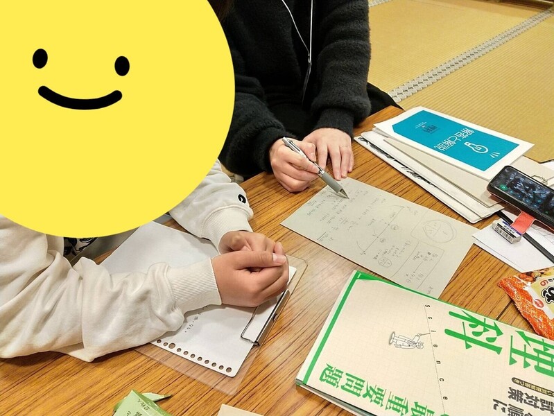 月2~4回、金曜日の16:00~20:00に小中高校生を対象とした教材持ち込み型の学習サポートを開催しています。学校のテキストや問題集、塾の教材など生徒が持参した教材の質問対応・解説といった学習サポートから、暗記方法やスケジュールの立て方といった学習方法のアドバイス、簡単な進路についての相談まで幅広く行っています。