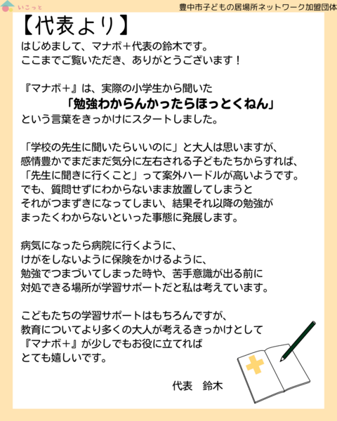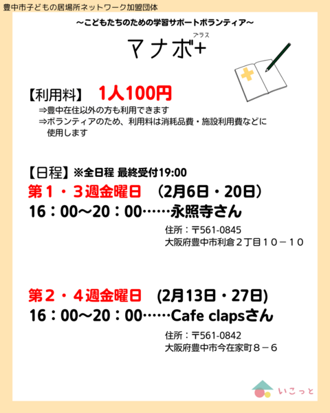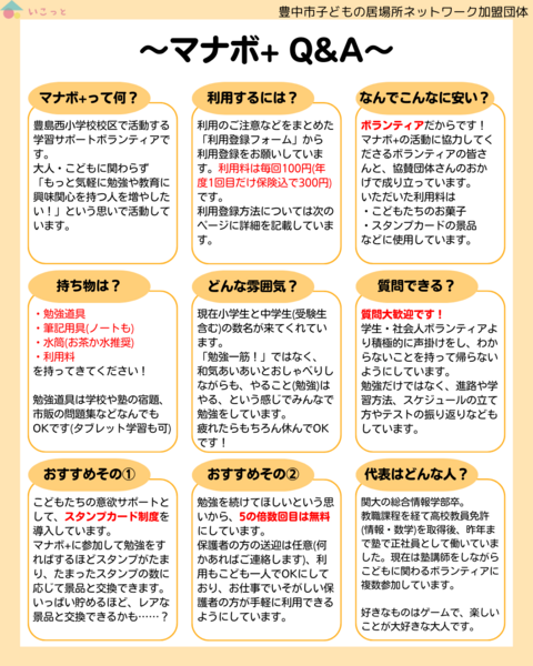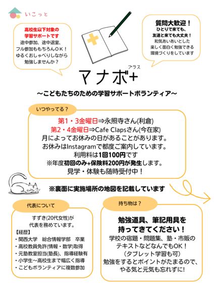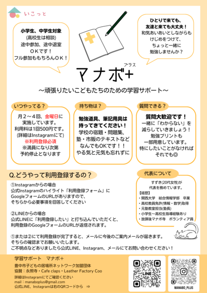 マナボ+が豊中市子どもの居場所ネットワーク(いこっと)加盟団体になりました。