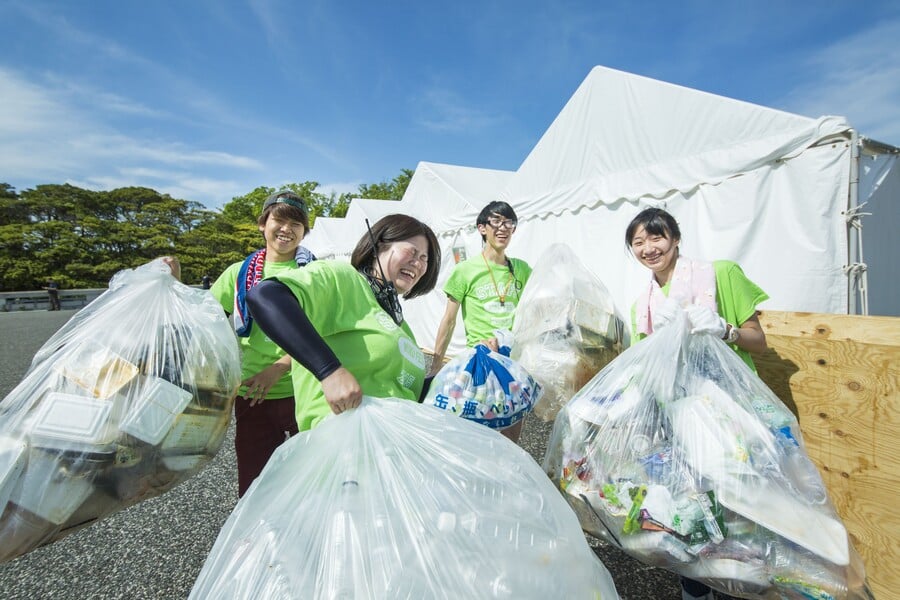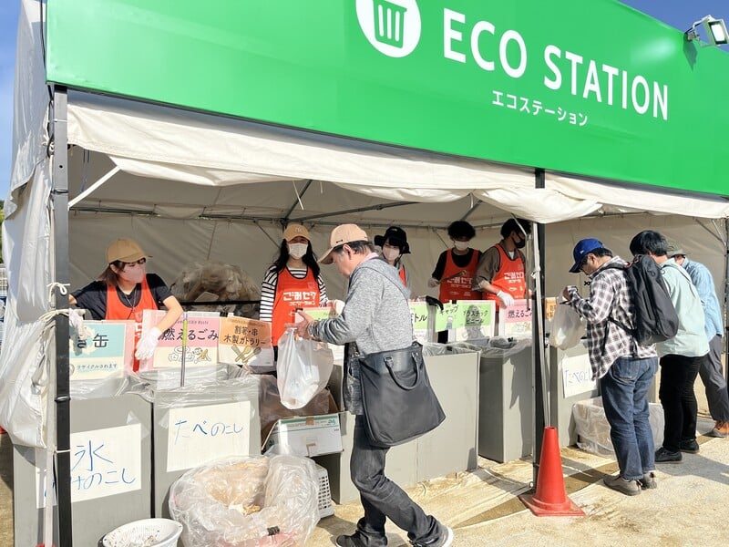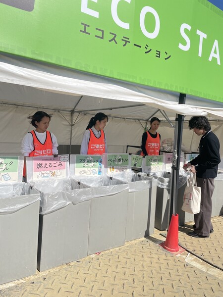 来場者が自分の手でごみ資源を分別できるようにする "ごみ資源の分別ナビゲート" や、ごみの根本削減に取り組む "リユースカップ・食器"の導入など、イベントの環境負荷を下げるための活動をボランティアと一緒に運営しています。