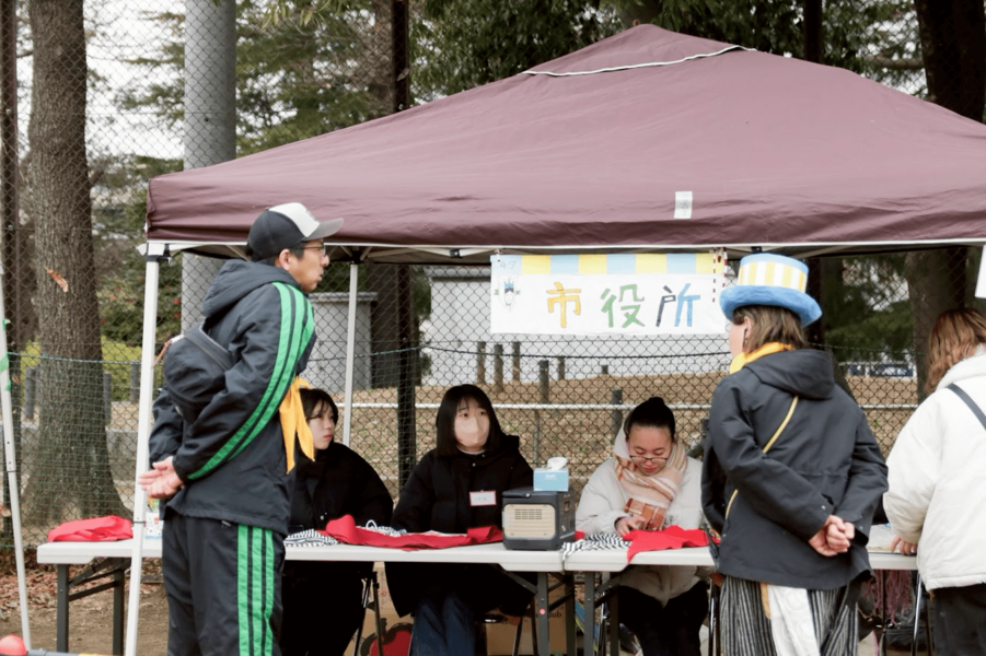 年に一度、公園に出現する「一日限りの仮想の街」には市役所、ハローワーク、銀行、税務署があり、こども市民(お仕事体験)たちは市民税を払って市民登録をし、ハローワークでお仕事を探し、銀行で給与を受け取り、税務署で所得税を払って、手取りで街でお買い物ができます。