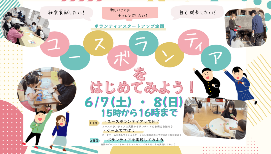 当ページでは『ユースボランティア』の募集、ボランタリーなイベント・講座の広報をメインに発信しています。