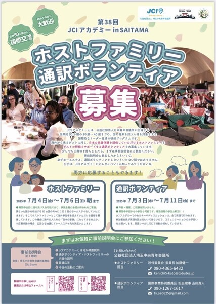 - 第38回JCIアカデミーin SAITAMAホストファミリー募集