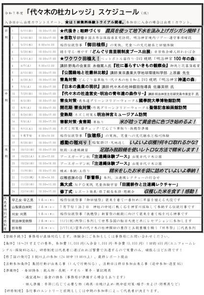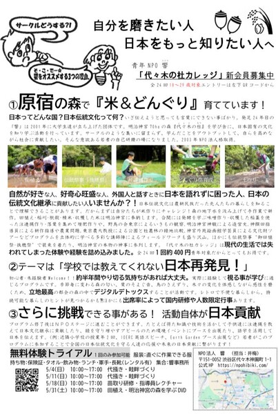 5月~12月まで実施する「代々木の杜カレッジ」に参加するメンバーを募集しています。