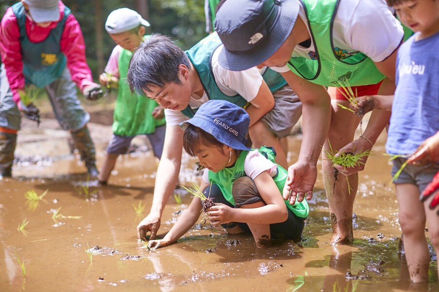 2002年には、小学校の子供たちとゆとり教育の一環として、一年を通じた稲作体験を行いました。また、自然を大切にしようとする気持ちを起こさせるきっかけを与えるため、森林グリーンウォークするなどの企画を設けました。このような社会に対する活動を通して、今後はより一層広範囲にわたって貢献したいと考えうようになりました。