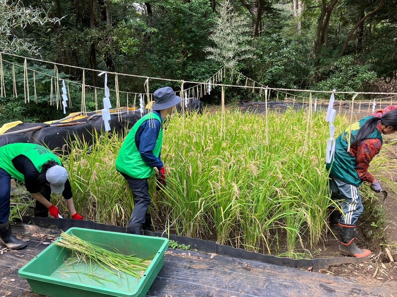 このプログラムでは、代々木の杜神饌田で、田植えからしめ縄、そして翌年の土づくりまでの一連の流れを体験しました。真夏の草取りは過酷で、予想していたよりも3倍近くの時間や労力がかかりました。