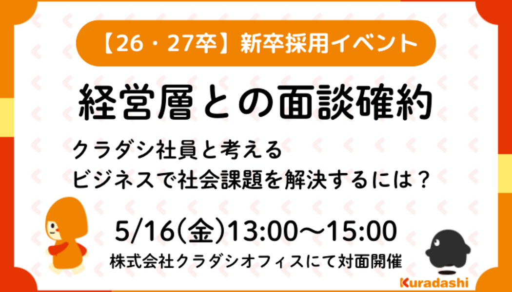 - 【5/16(金)クラダシ1dayイベント】 社会課題解決ビジネスの最前線を体験