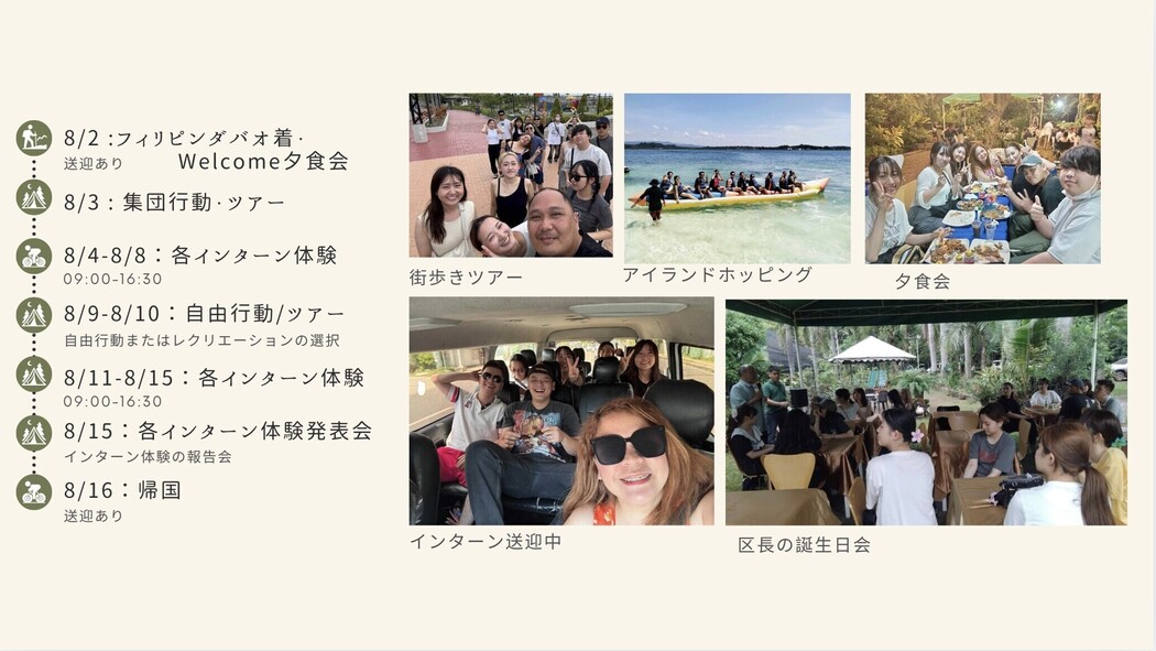 今回のダバオのインターンでなくても、一人でも多く日本から世界に羽ばたく人が増え、"自分の人生"を生きる人が増えたらうれしいなと思っています!