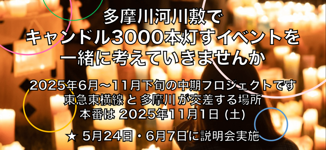 - 多摩川にキャンドル3000本並べるイベントを一緒に企画しませんか?★本番11/1