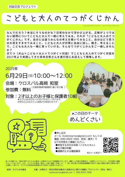 主催者は50代、スタッフは20代、参加者は未就学児~小学生と保護者で幅広い年齢層で場を開いています。 |