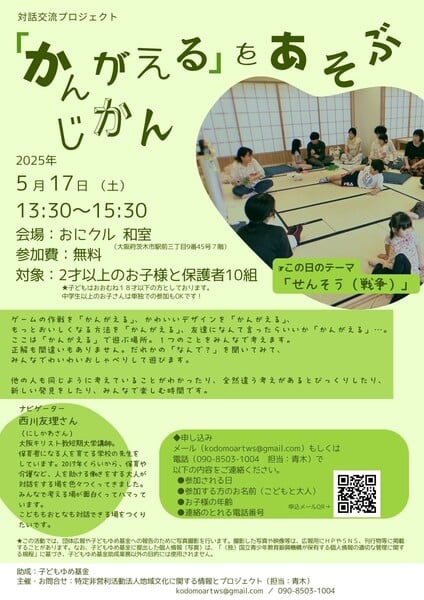 ひとりひとりのありのままを尊重し合える世界であって欲しいという思いから、まずそれぞれの考えや思い、表現を否定されることなく表に出す機会、受け止め合う機会を多様にたっぷりと体験できる場を作りたいという思いで対話の場や表現で遊ぶ場などを設けています。