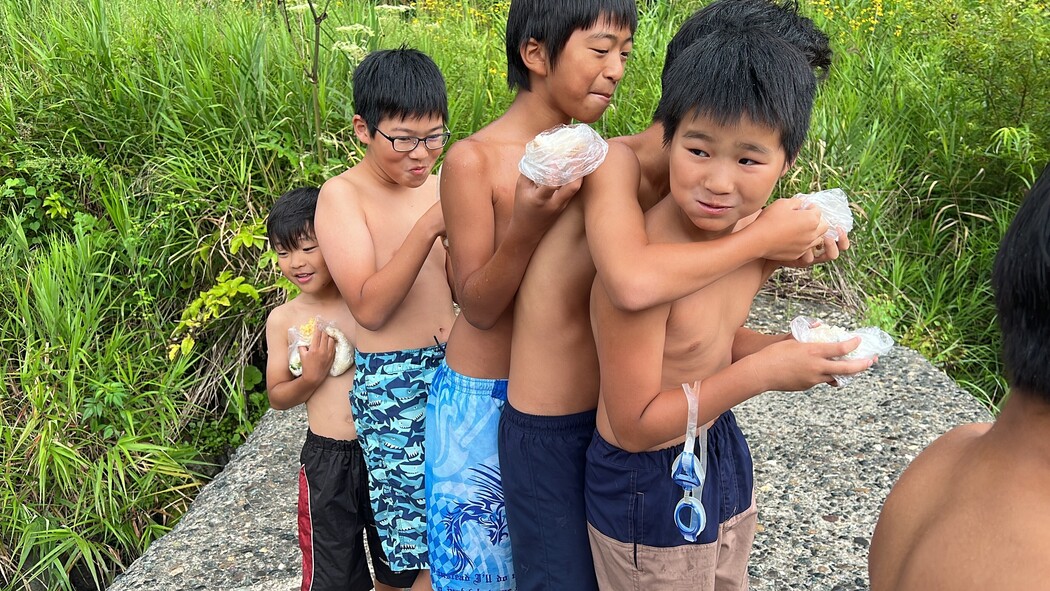 朝起きて、朝ごはんを食べて、朝学習で宿題を済ませ、そこから1日のアクティビティの開始です。川あそびや作る遊び、焚き火や釣りなど子ども達のリクエストや話し合いの中から、1日のスケジュールを作り、日々を過ごしていきます。洗濯や掃除などもあります。あそびだけでなく、親元を離れて、規則正しい生活を送ることも、ふうき自然塾のキャンプの大きな特徴です。