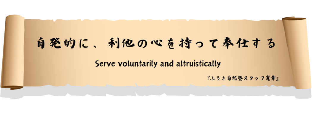 ふうき自然塾のスタッフのモットーは「自発的に利他の心を持って奉仕する」です。