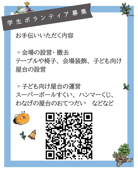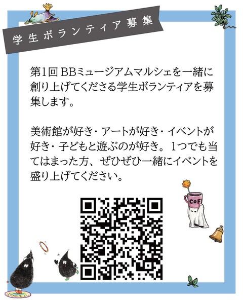 - 「BBミュージアムマルシェ」を一緒に創り上げてくださる学生ボランティアを募集