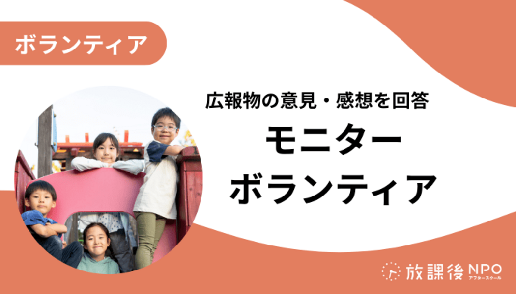 放課後NPOのWEBサイトやパンフレット、note記事を見て、ご意見・ご感想をお寄せいただくモニターボランティアです!皆さんのお声をもとに、よりわかりやすい広報発信につなげていきます◎