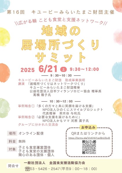 - 地域の居場所づくりサミット「広がる輪:こども食堂と支援ネットワーク」