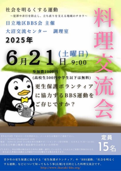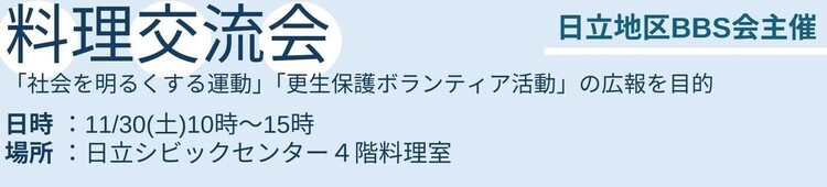 日立地区BBS会では「学習支援会」「料理交流会」「社会参加活動」など様々な施策に取り組んでいます。息の長いご支援を賜りますよう何卒お願い申し上げます。