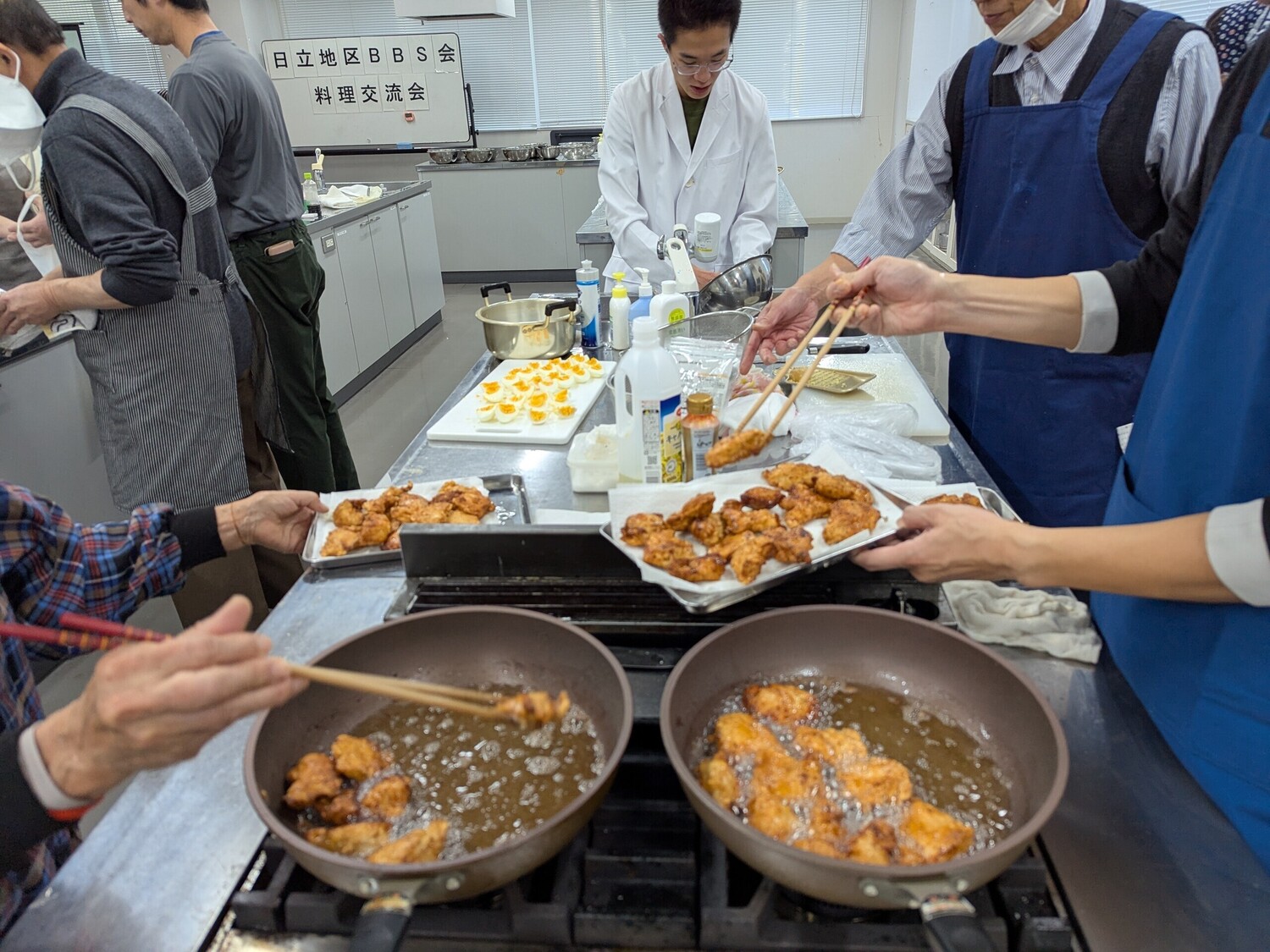 今回は、けんちん汁、から揚げ、きんぴらごぼうなど作りと食事を楽しみながら談笑などを交えて交流しました。それぞれ各会(保護司、更生保護女性会、BBS会、保護観察官)の関係者が、お互いの近況や各会の事を知り合い、身近な存在として感じる良い機会になったと思います。