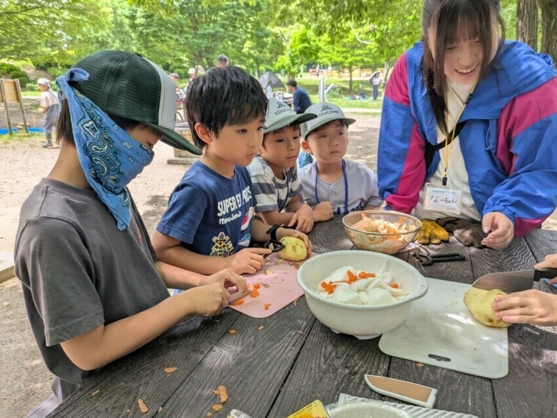 野外炊事が失敗で終わることも、しっかりそのまま体験します。そんなホンモノの体験を実施していきます。