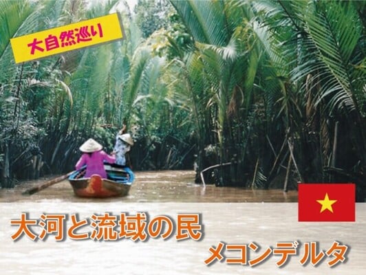 東南アジアの大自然を満喫!大河メコン川の最下流のデルタ地帯へ向かいます。ボートに乗って水路が複雑に入り組んだ先々をジャングルクルーズ。