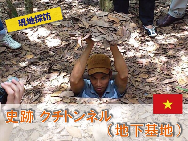 ベトナム戦争時、ベトコンがアメリカ軍と戦うため、全長250Kmのトンネルを掘り、地下で生活をしていたシェルター的なトンネル網の史跡を訪ねます。