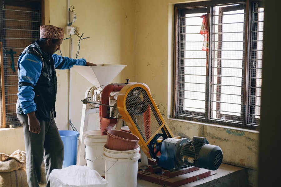 ポカラから約1時間のところにあるハルパン村。ここでは、多様な作物と一緒にコーヒーを栽培しています。村内でも力を入れてコーヒー栽培をしているガンガさん宅には、村中で収穫されたコーヒーチェリーが集まり、水洗処理方式の精製とパルパーでの果肉除去、天日干しを行っています。また、天気に恵まれれば、ハルパン村の頂上からはフェワ湖、マチャプチュレやアンナプルナなど迫力のあるヒマラヤの山々を一望できます。