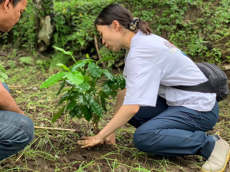 BIKAS COFFEE VILLAGE 5期で集まった名前や想いを綴ったネームプレートを添えて、コーヒーの苗の植樹をダリンボット村の農家さんたちと行います。 コーヒー(アラビカ種)の50%がなくなるとされる2050年問題が叫ばれる中、持続的なコーヒー生産と消費を実現します。この植樹をきっかけに、村人の想いが中心にある暮らしの発展を促していきます。