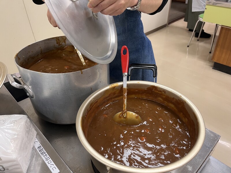 お野菜をメモ通りに切ったり、炒め煮込んだりと、複数のボランティアスタッフの中で支えてもらいながら、段取り良くスムーズにカレーを作る事ができました。