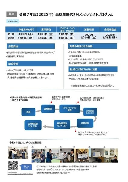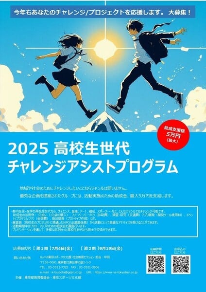 都内在住・在学の高校生世代なら、サイエンス、音楽、アート、福祉、スポーツなど、どんなジャンルでもチャレンジ可能です。