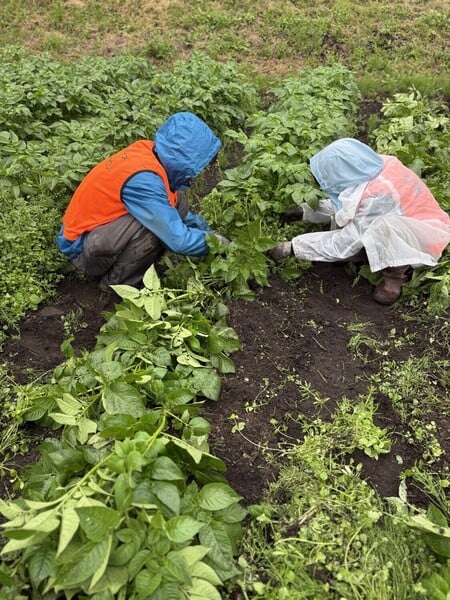 そんなに難しい作業ではありません。無農薬、減農薬栽培ですのでどうしても雑草や鳥、害虫との戦いになります。その農作物の世話をして迎える収穫はそれはもうヒトシオのものがあります。「これはオレが雑草をひたすら抜いてやったからこんなに大きなジャガイモになったんだ」「ここは私が堆肥をまいてあげたから大きなブルーベリーの実が実ったのよ」と。そしてそれらを少し分けていただき、口にした時の味はスーパーなどで買う野菜や果実とは違った味と、なによりも無農薬、減農薬栽培での安心があります。そう、自分たちで世話をしたのですから無農薬、減農薬を自分たちの目で確認し、成長を見ています。