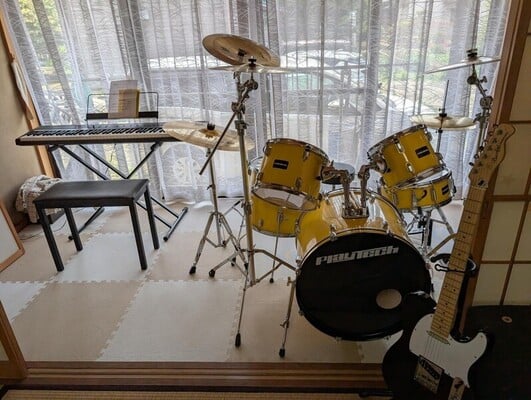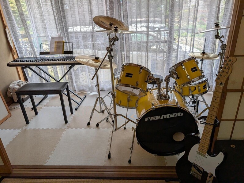 ドラムやギター・ベース・キーボード等楽器も豊富にあり、福インクルに通い始めてから楽器に挑戦する子どもも多くいます。