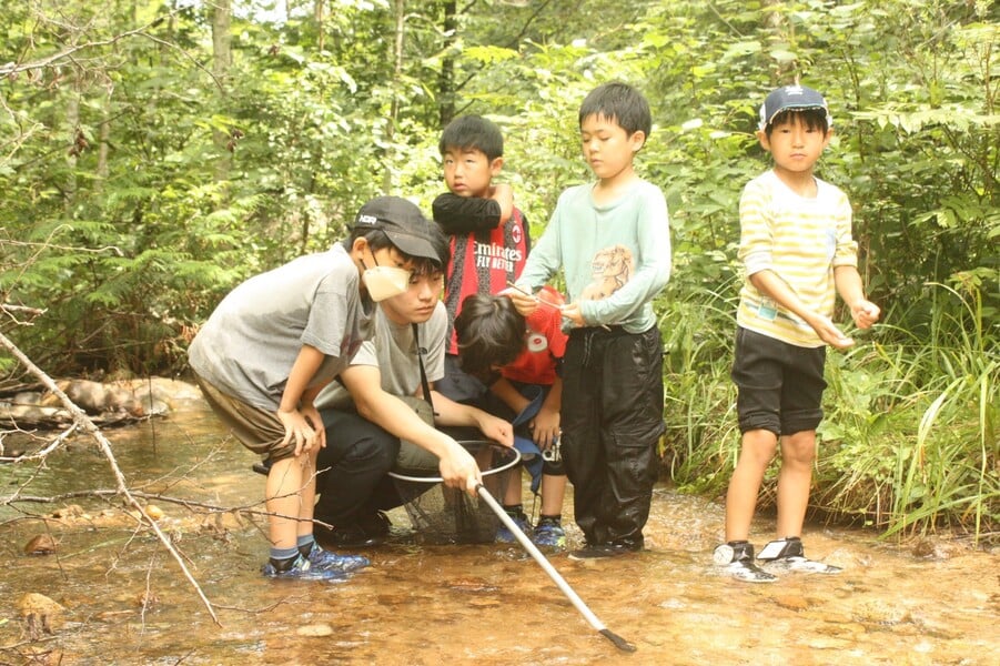 信州の大自然の中でキラキラ光る子ども達と思いっきり遊びながら、野外活動での安全管理や知識を学ぶ。