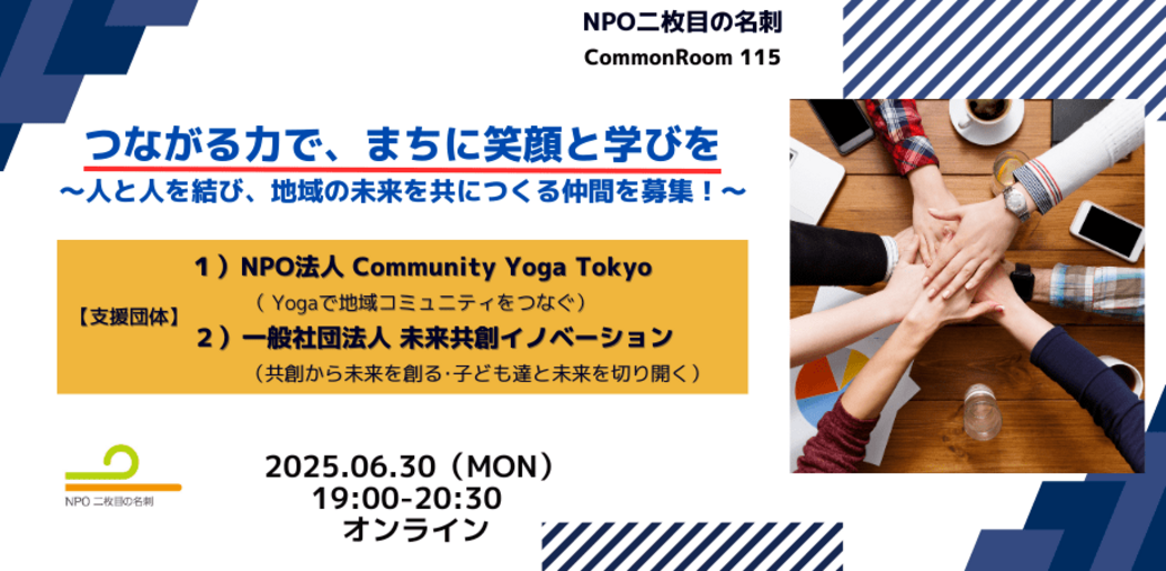 ✅ヨガで地域を繋ぐ活動を行っている団体「コミュニティヨガトウキョウ」✅地方の地域全体で学びを深める活動をしている団体「未来共創イノベーション」素敵な2団体!