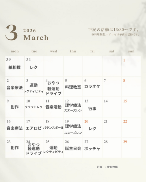 基本、生活介護事業つばさ内での活動です。 事業所へお越しください。 |
