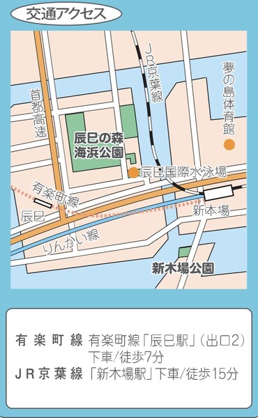 9:10に 辰巳の森海浜公園管理事務所前に集合ください(詳細は地図をご参照ください) 〒135-0053 東京都江東区辰巳二丁目1番35号 辰巳の森海浜公園管理事務所 <辰巳の森海浜公園管理事務所までのアクセス> 東京メトロ有楽町線「辰巳駅」出口2徒歩7分