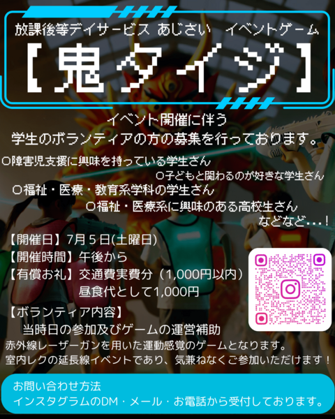 施設内イベント【鬼タイジ】について、下記の条件にてご参加いただきたいと思います。