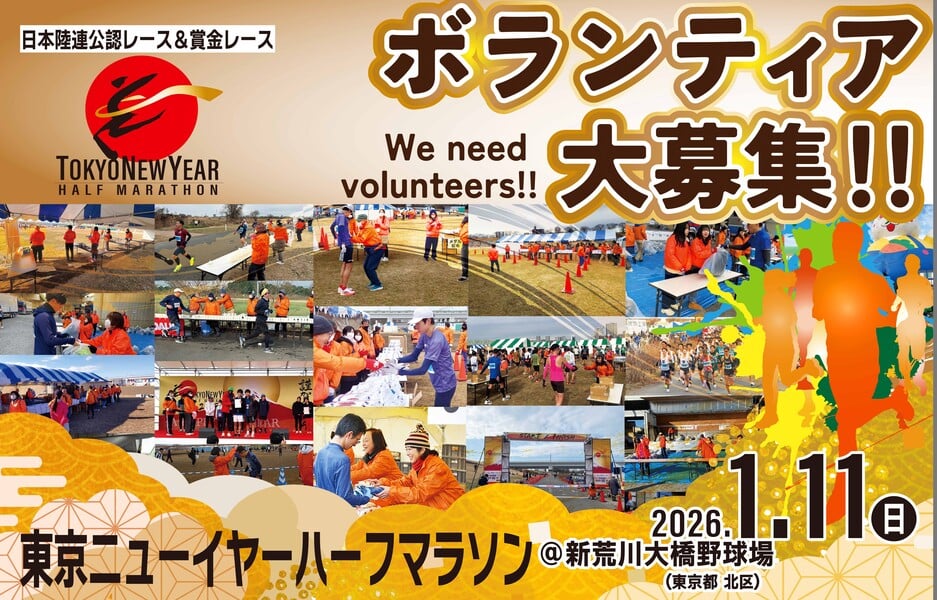 - 【1/11マラソン大会ボランティア募集】東京ニューイヤーハーフマラソン2026