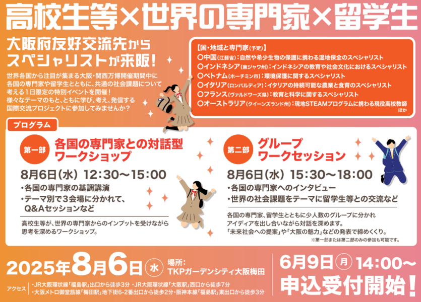 第二弾は "高校生等×世界の専門家×留学生" 大阪府友好交流先からスペシャリストが来阪!
