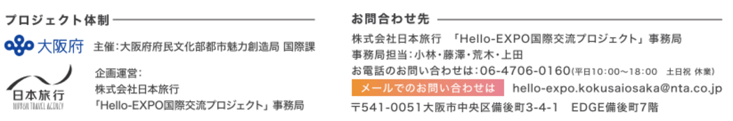 大阪府府民文化部魅力創造局国際課(企画運営:㈱日本旅行Hello-EXPO国際交流プロジェクト事務局)