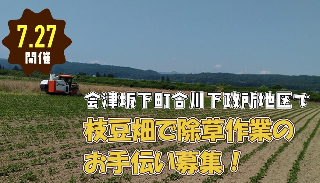 - 会津坂下町合川下政所地区の枝豆畑で除草作業のボランティアを募集します!