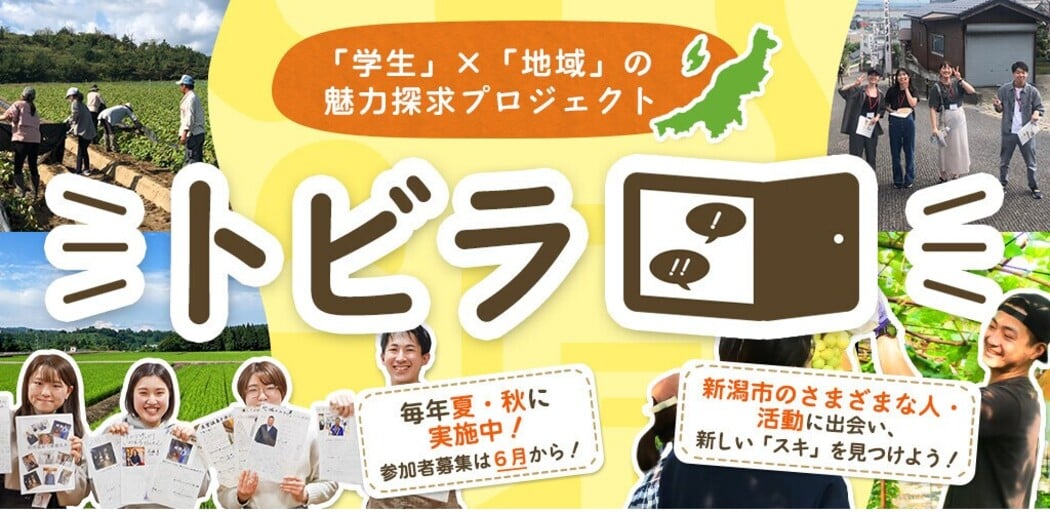 新潟県内外の学生と新潟市内で地域づくりを実践する団体・住民の人たちが一緒になって地域活性化に向けて活動する「トビラプロジェクト」。2025年度9月に実施する5泊6日のプロジェクトの参加者を募集中。