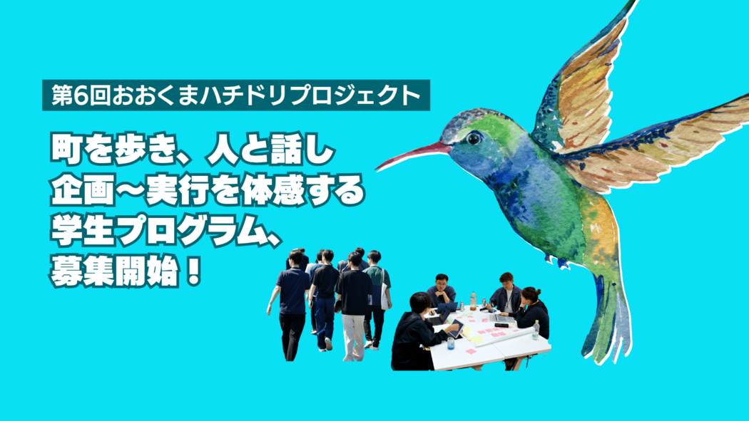 福島県大熊町を舞台に、課題解決型の地域企画に挑戦する生徒・学生向け実践プログラム。町を歩き、人と話し、課題に向き合いながらアイデアを企画・発表します。参加費無料・現地合宿あり。