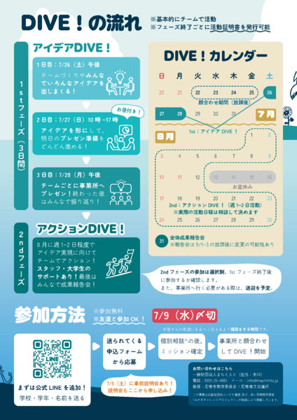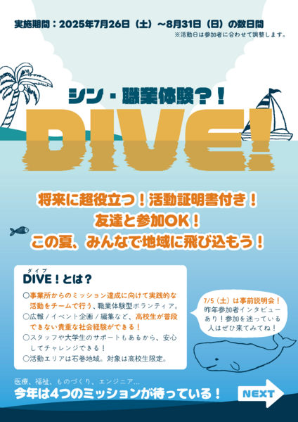- 【7月下旬~8月】職業体験型ボランティア『DIVE!』