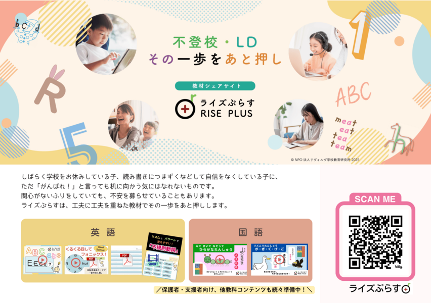不登校の背後にLDがあることも少なくありません。それは必ずしも「学習障害:Learning Disabilities」ではなく「学び方のちがい:Learning Difference」などと捉えて然るべきものですが、無理解の内に適切な支援がなされないばかりか、苦手の克服を強いて自信を損ねてしまっていることも多々あります。