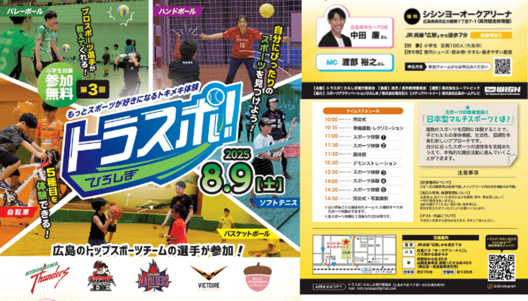 小学生向けスポーツ体験イベント「トラスポ!ひろしま」を支える運営ボランティアを募集!プロ選手と共に、子どもたちの“好き”を育む1日を一緒につくりませんか?未経験歓迎!