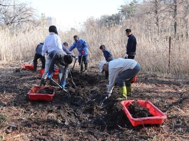 ▼夏の「湿地de草刈り」イベントに引き続き、石神井池の湿地を保全するイベントを開催しました。その名も「湿地掘りの日」!