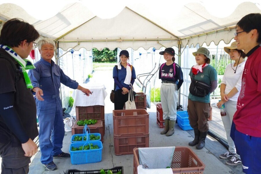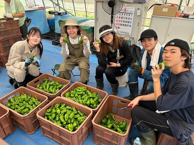 農作業はみんなでやるものです。地域の人たちと一緒に大槌町の特産物であるピーマンの収穫や選別をします。