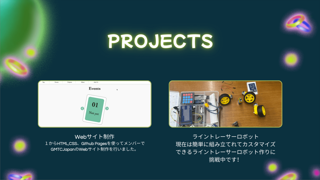 GMTCはロボットやプログラミングを通じて、“つくりながら学ぶ”を大切にする学生団体。初心者も大歓迎!HTML,ロボット、C++など様々な得意分野を持つ学生が集まるチームで運営メンバーを募集中です!