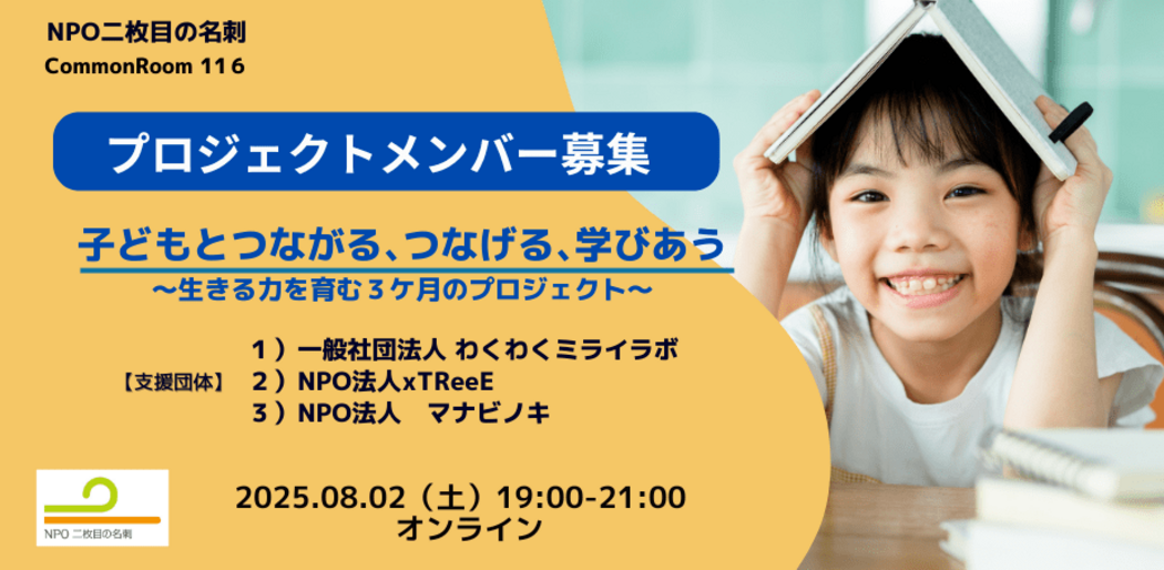 ★注意★ CommonRoom116(説明会)には参加費(3,000円早割1,500円)を承ります。activoにお申込みいただいた方には、正式なお申込みURLをお送りします。お手数ですが入力の上返信ください。弊団体は、持続可能な形でNPOと社会人をつなぐ形を実現するために、プロジェクト運営費の一部を寄付やコモンルーム参加費で充当させていただいております。ご理解いただけますと幸いです。 |