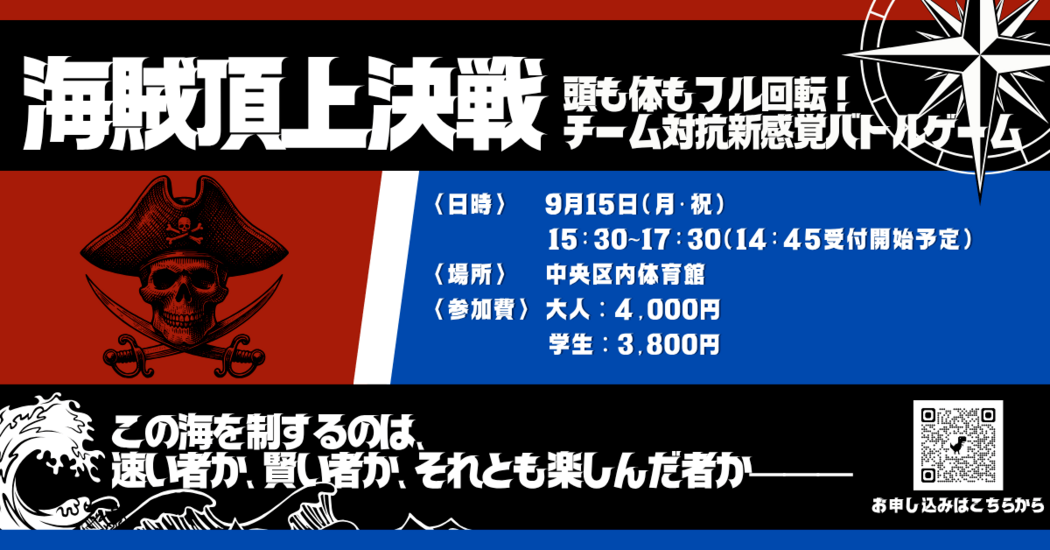 - 【9/15開催!】海賊頂上決戦~頭も体もフル回転!チーム対抗新感覚バトルゲーム~