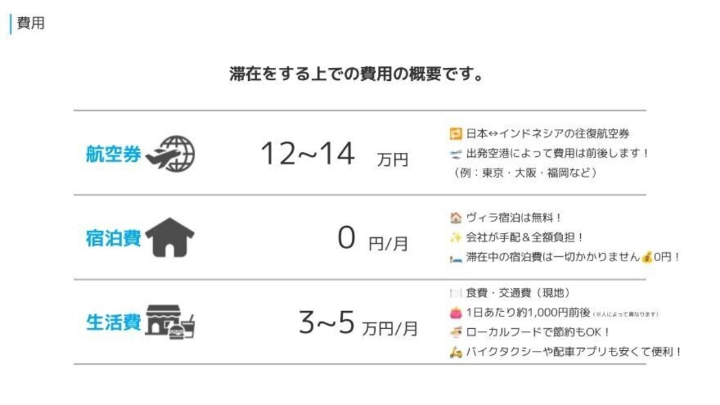 💰 費用イメージ(1〜3ヶ月の滞在)